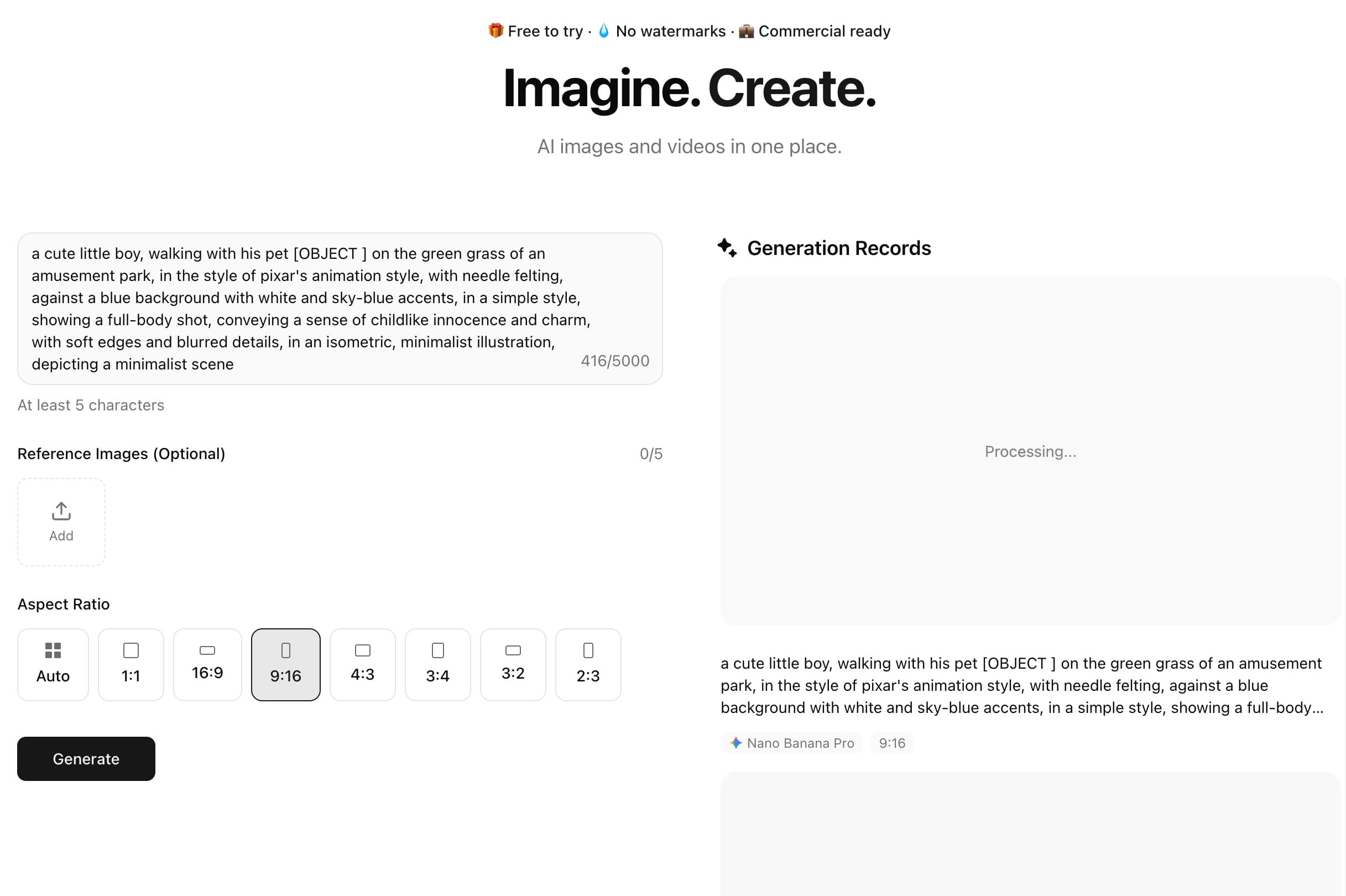 If the home page feels like “quick demo mode,” the Create page is where you go when you want more control.